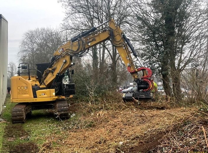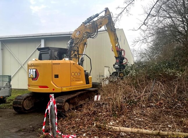 Vor kurzem begann die Baufeldfreimachung für den Hallenanbau der TSG Erlensee mit dem Roden und Baumfällen auf der zu bebauenden Erweiterungsfläche.