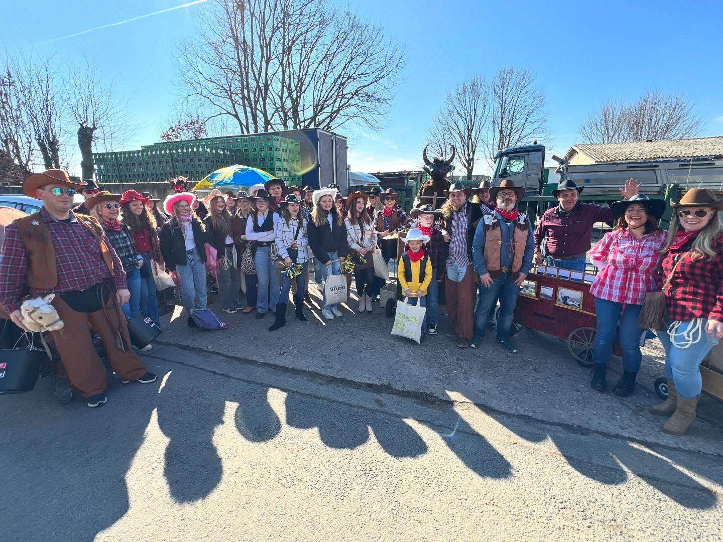 Mit Cowboyhüten, karierten Hemden, Westernboots und mit ordentlich guter Laune ausgestattet, trafen wir uns bei schönstem Frühjahrswetter am Treffpunkt und warteten auf den Start.