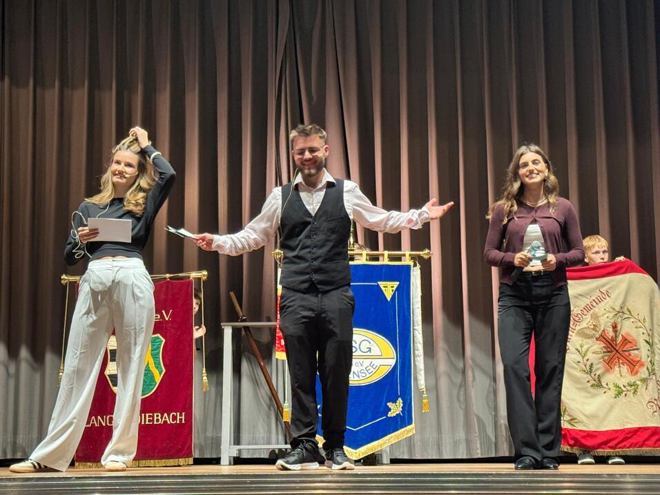 Nach einer kurzen Pause präsentierten die Dancing Devils ihren neuen Tanz. Wer genau hinsah, erkannte auch die Moderatorinnen und den Moderator wieder: Ein „Job“ ist nicht genug, Tanzen geht immer! Anschließend stürmte die Floorball-U11 die Bühne und wurde für ihren Titel „Hessenmeister“ gefeiert. Wie alle ausgezeichneten Sportler erhielten sie erstmals ein TSGE-Handtuch, was für große Freude sorgte. Beim Ausmarsch erklang der Fangesang „Von der Kinzig…“.
