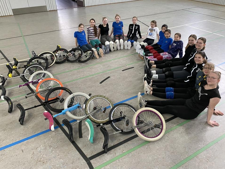 Komme gerne zu uns ins Einrad-Training, dann üben wir gemeinsam! Donnerstags von 16 bis 17 Uhr in der Erlenhalle (seitlicher Sportlereingang).