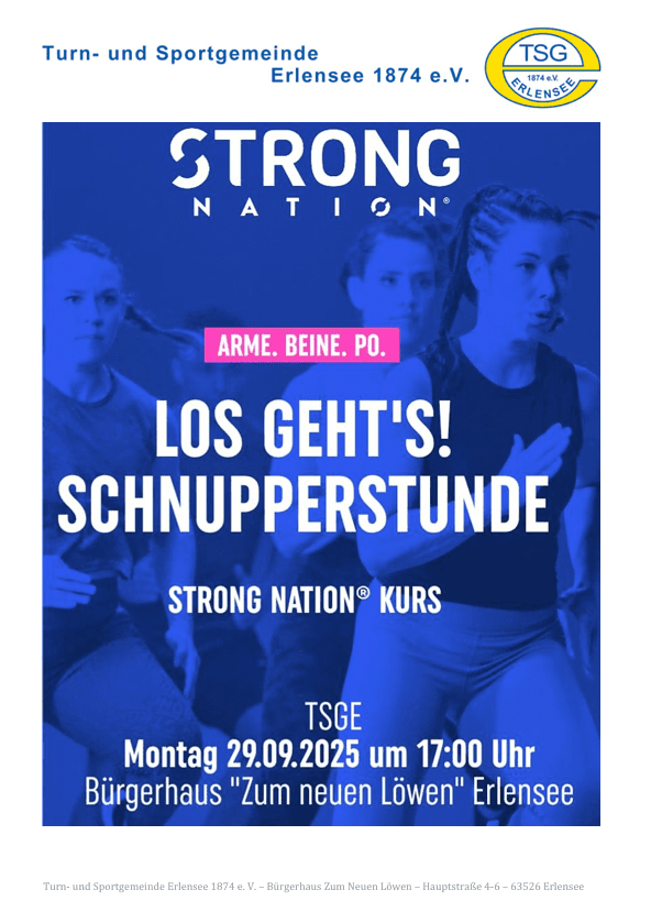 Es gilt weiterhin, dass für die Fitness-Angebote ein Sportbeitrag von 3€ zusätzlich berechnet wird. Die Anmeldungen gehen bitte an Claudia Bärbel Jörger, Abteilungsleitung Fitness via fitness@tsge.de. Informationen bekommt ihr gerne unter 0151 22 633 089.